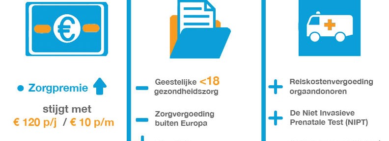 Laten we beginnen met het belangrijkst; De zorgpremie stijgt dit jaar 114 euro per persoon per jaar. Dit komt neer op zo’n tien euro per maand. Het eigen risico zal stijgen van 360 naar 375 euro.